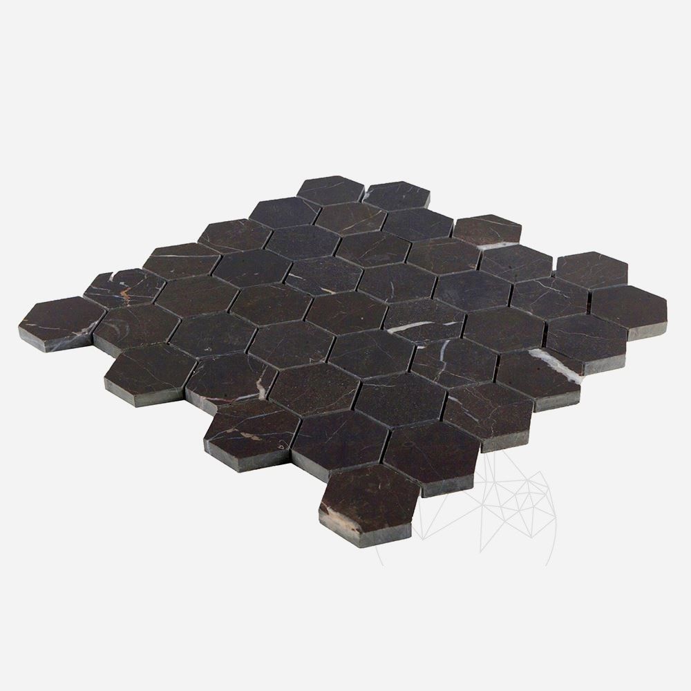 Мозаичный мрамор Nero Marquina Hexagon Полированный 2,5 x 2,5 см